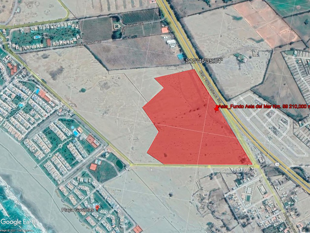 Terreno en esquina con 640 ml con frente a la Panamericana Sur y 502 ml a la vía de acceso a las playas Gaviotas, Cocoa y Palabritas.