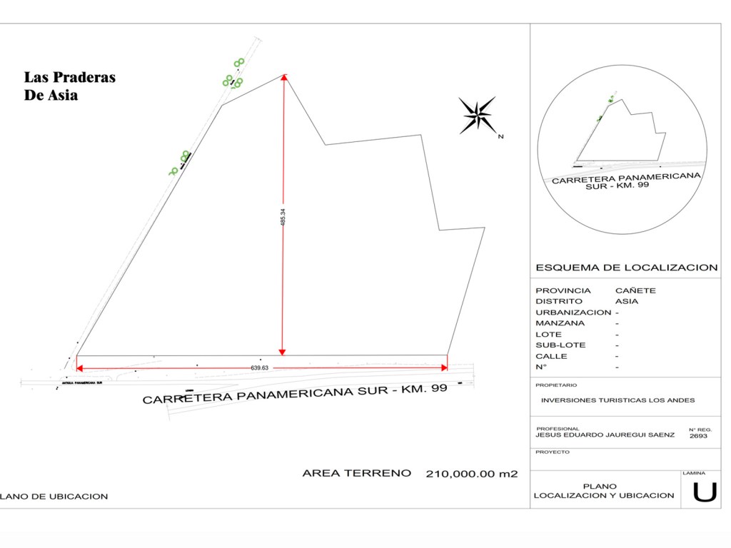 - Por el frente con la Panamericana Sur con 639 ml..